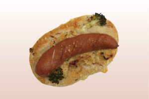 カンパーニュ生地にジューシーな粗挽きソーセージとキャベツの酢漬けをのせ焼き上げました。