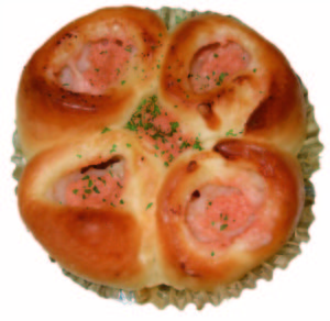 もちもち食感の北海道産杵つき餅に定番の博多明太をトッピングしたちぎりパン。