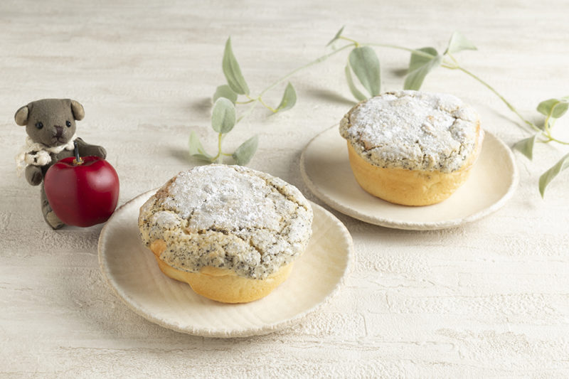 りんごとカスタードのパンを紅茶香るサックリしたマカロンで包みました。