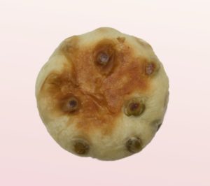 あっさりした白あんと甘くてほっこりした食感のうぐいす豆を包み焼き上げました