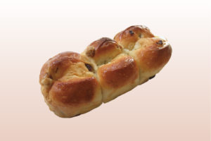 甘酸っぱいレーズンをたっぷり混ぜ込みバターとグラニュー糖をのせて香ばしく焼きました。