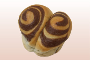 生クリームたっぷりの口溶けの良いパン生地にココアでマーブル模様にしたシンプルパン。