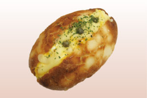 北海道産のホクホクポテトにとろけるチーズ、明太子、大葉をトッピング。