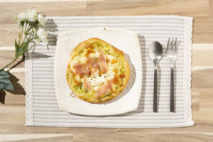 バジルポテトに生ハムをふんだんにトッピングしたボリューム満点のピッツァです。